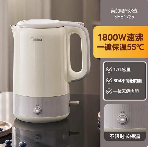 美的恒温电热水壶家用智能全自动不锈钢烧水壶保温一体热水壶官方