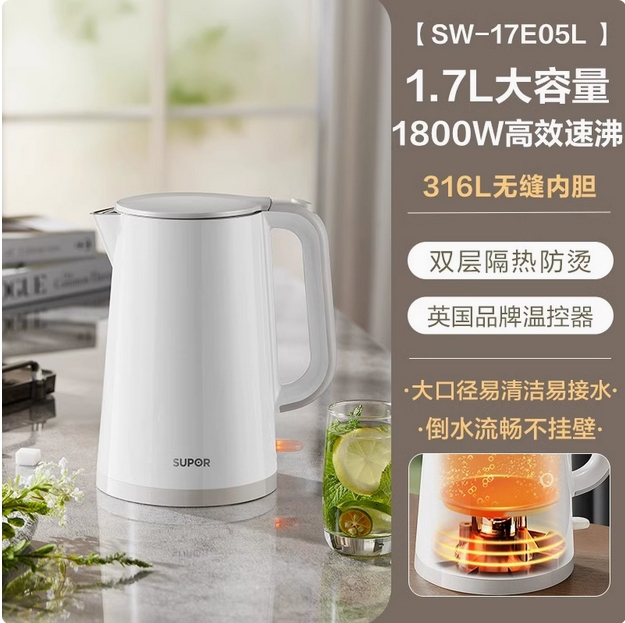 苏泊尔烧水壶2025新款家用电热水壶316不锈钢大容量电热烧开水壶