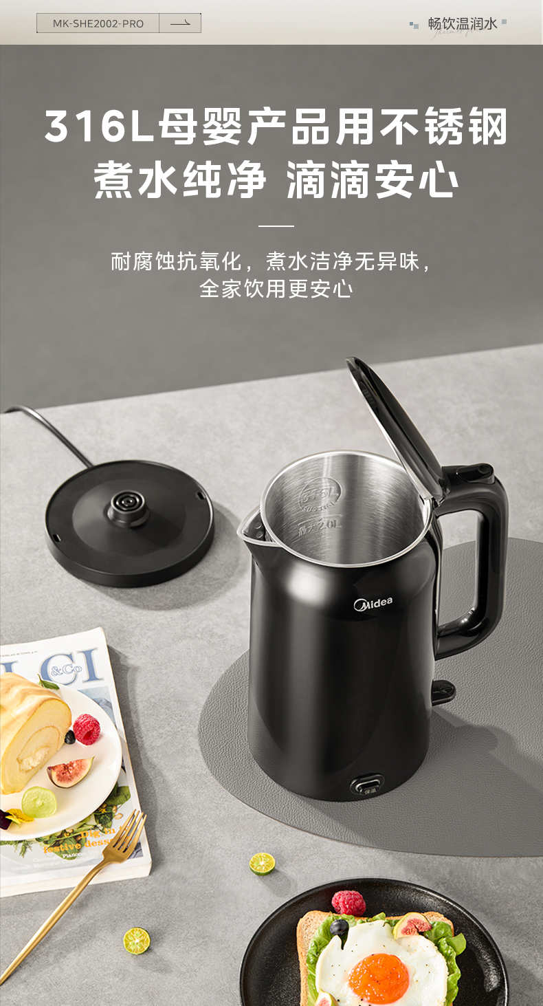 美的电热水壶2025新款家用2L大容量316L不锈钢电水壶自动断电烧水