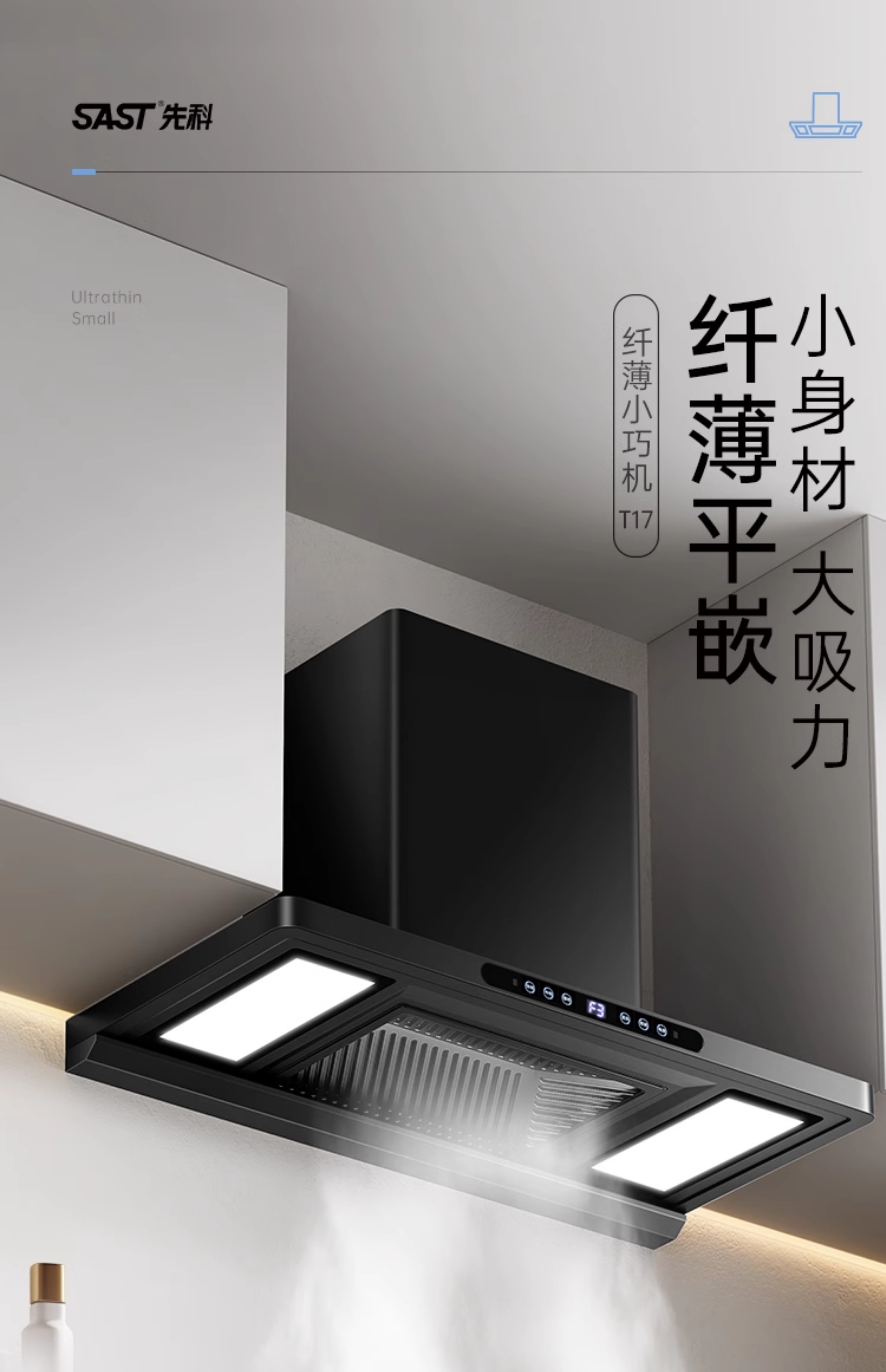 sast先科抽油烟机家用厨房大吸力顶吸式油烟机自动清洗租房吸油机