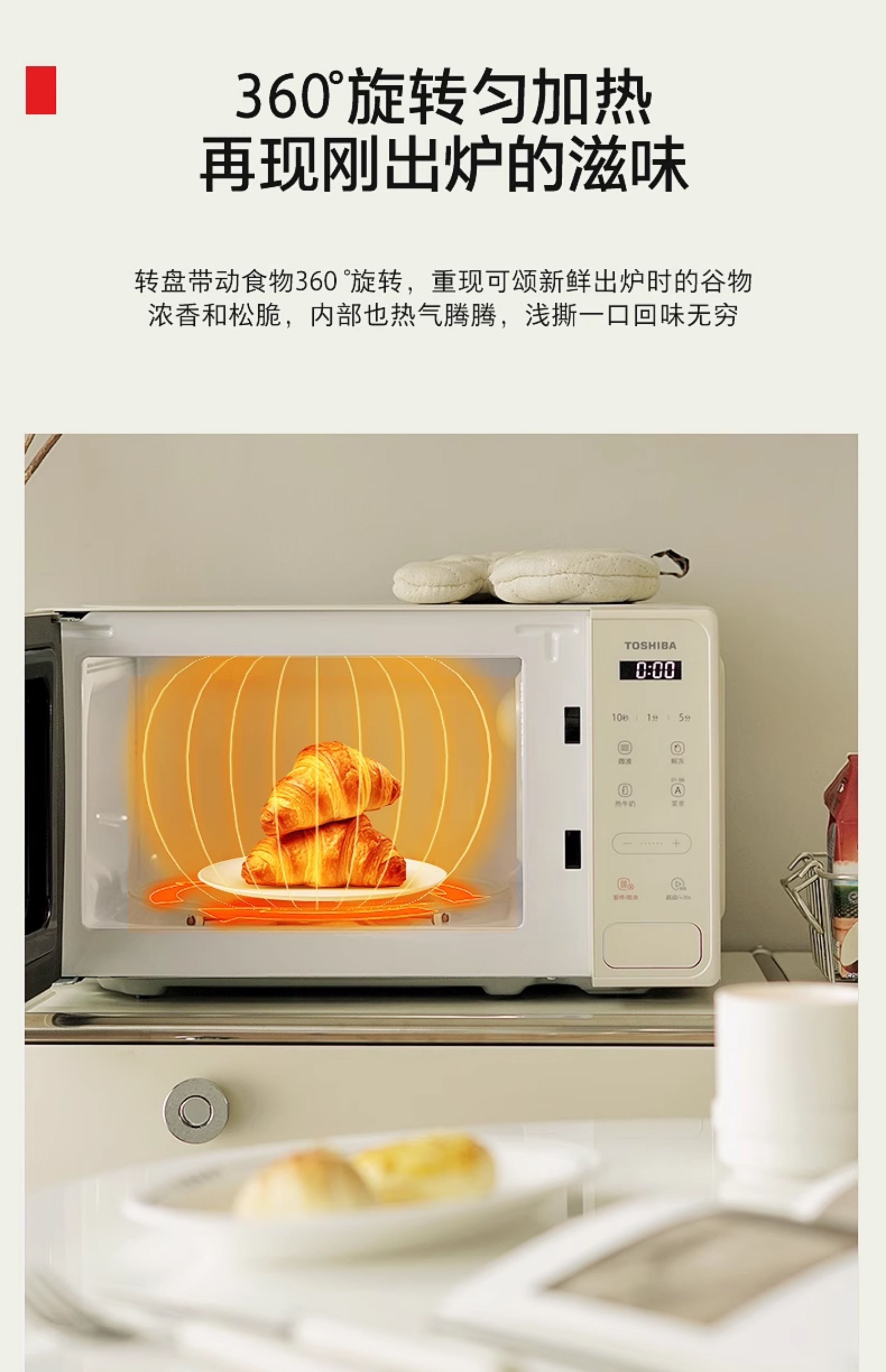 东芝微波炉家用复古迷你小型转盘官方旗舰正品小奶油2205