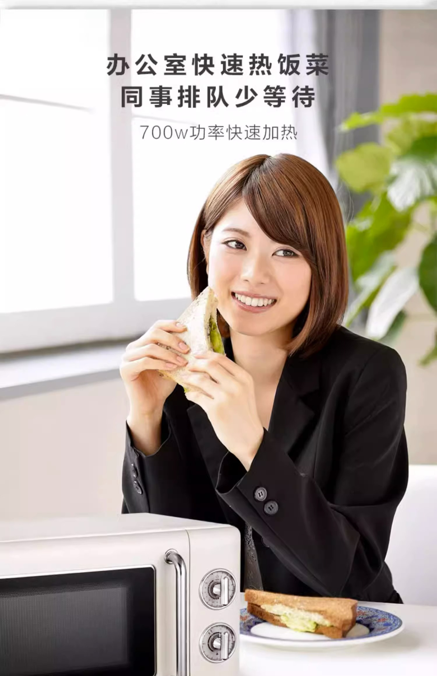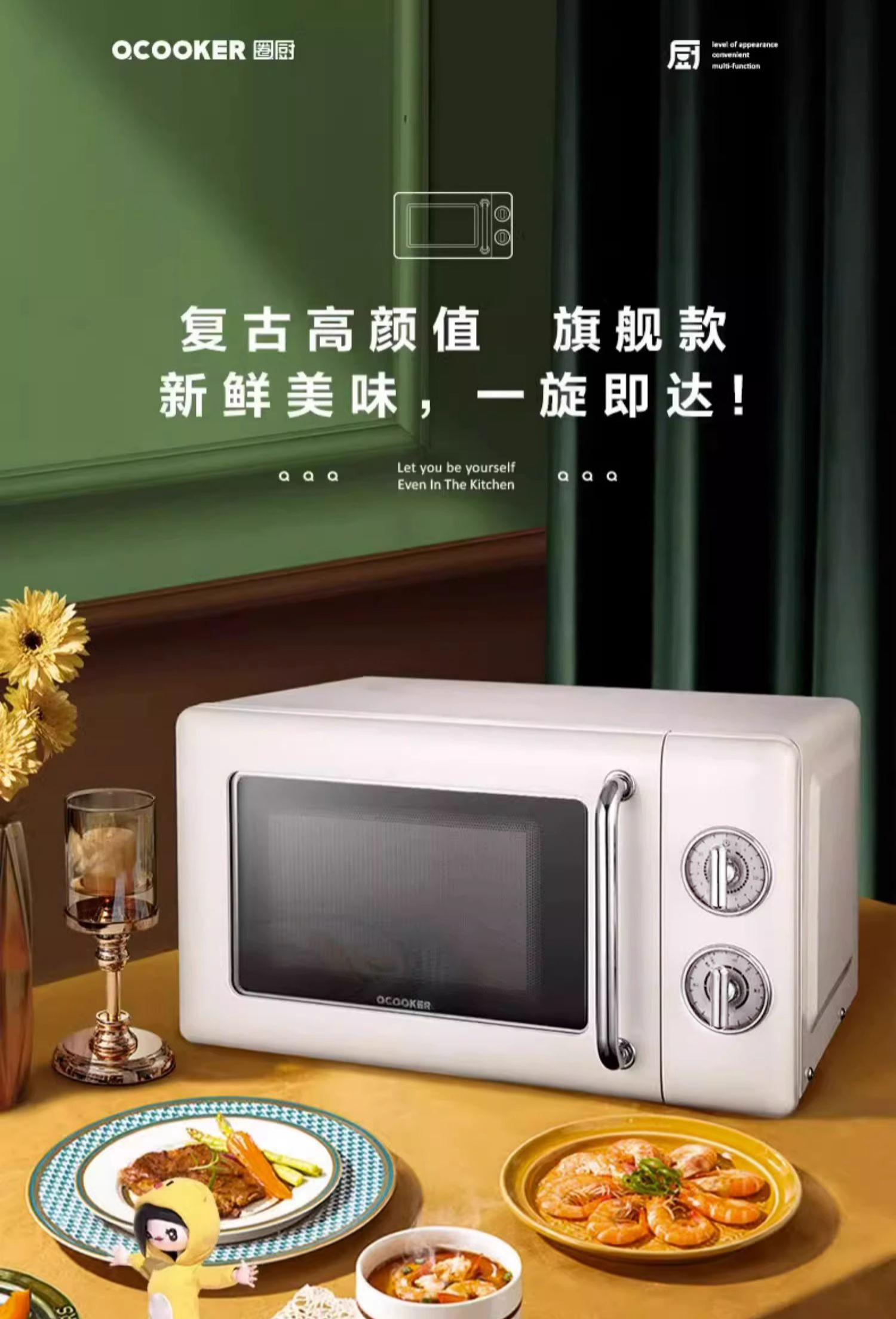 圈厨经典复古微波炉20升家用全自动转盘微波加热小型