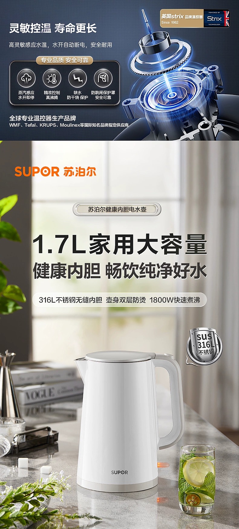 苏泊尔烧水壶2025新款家用电热水壶316不锈钢大容量电热烧开水壶