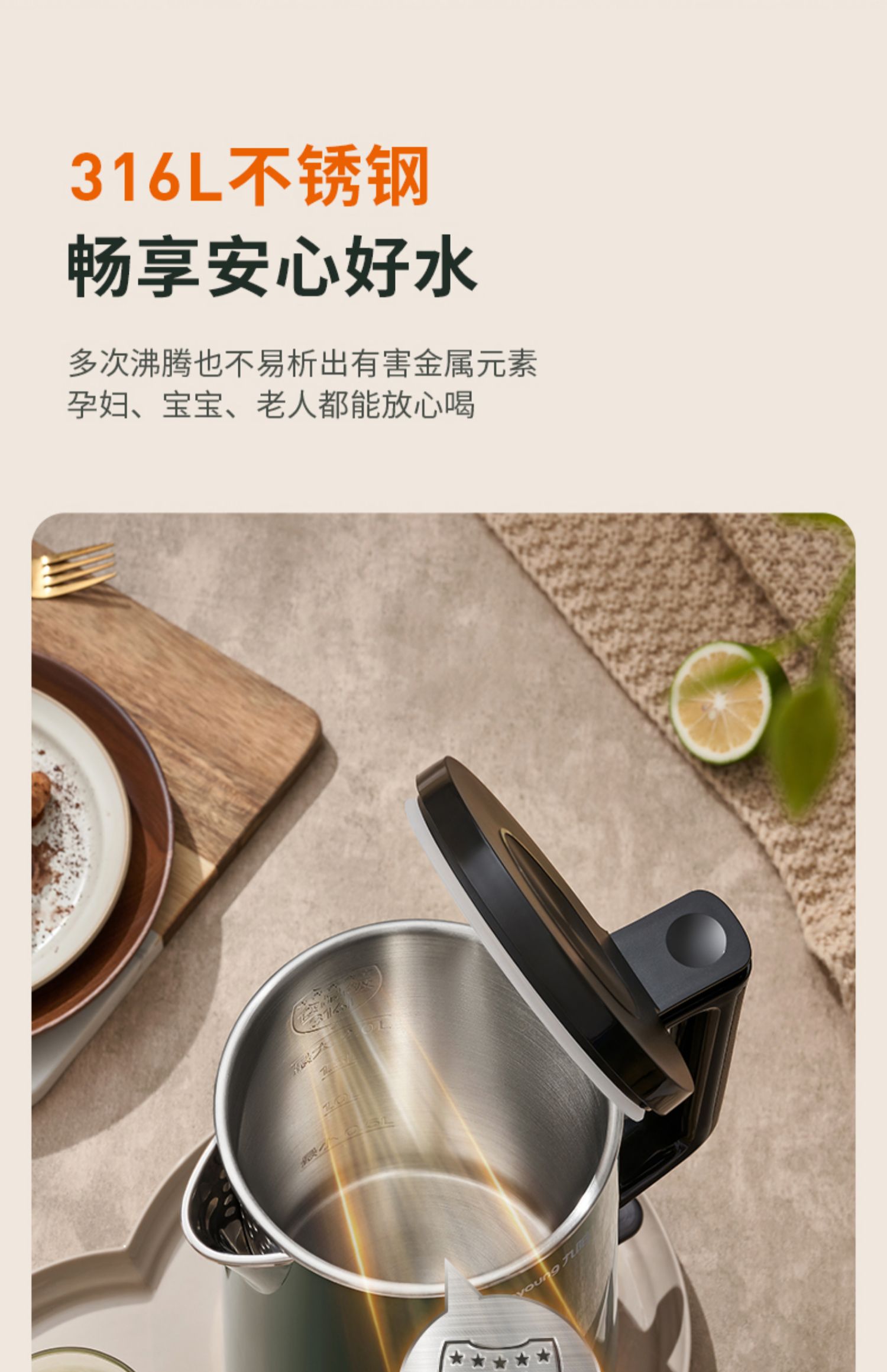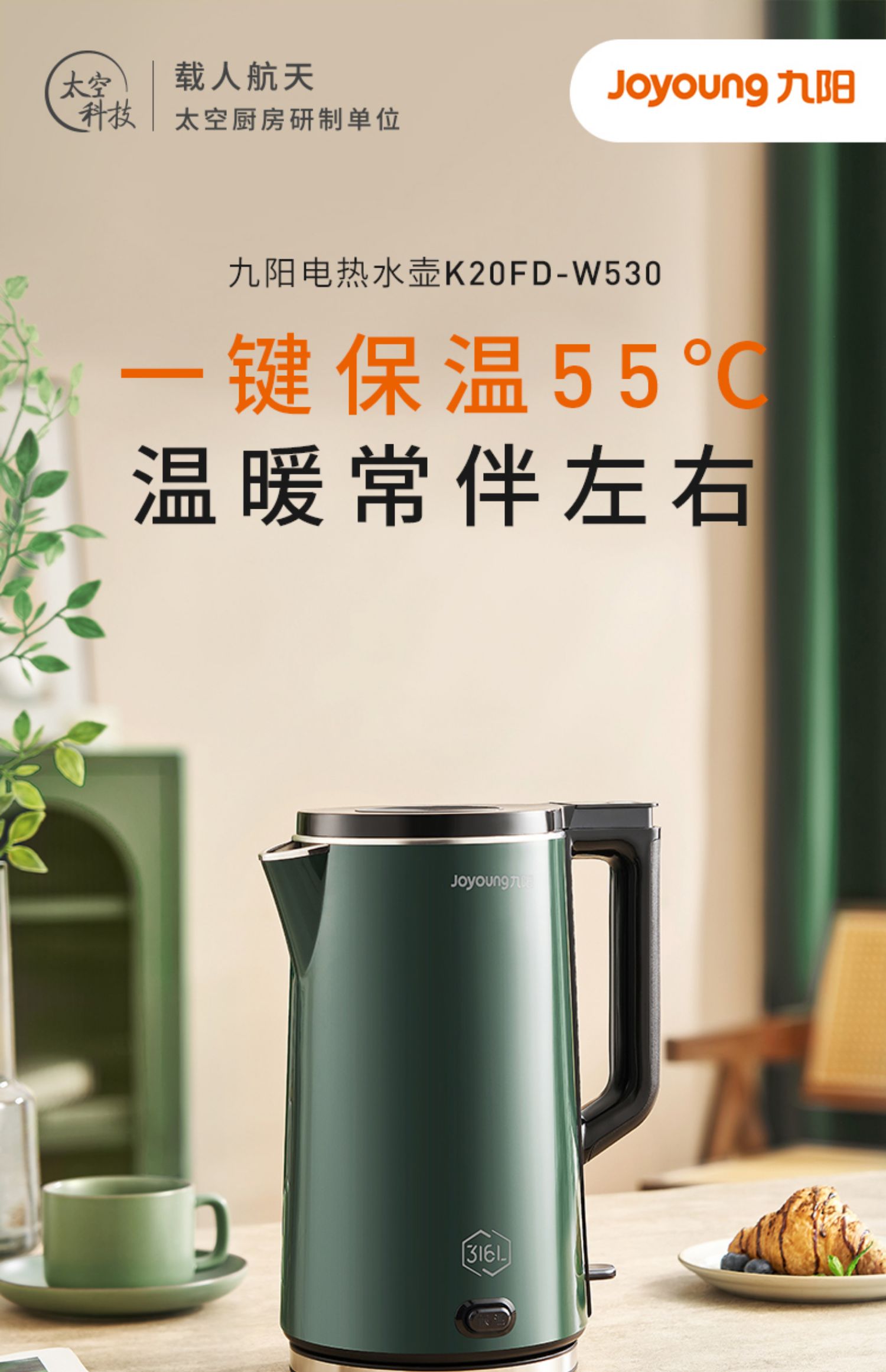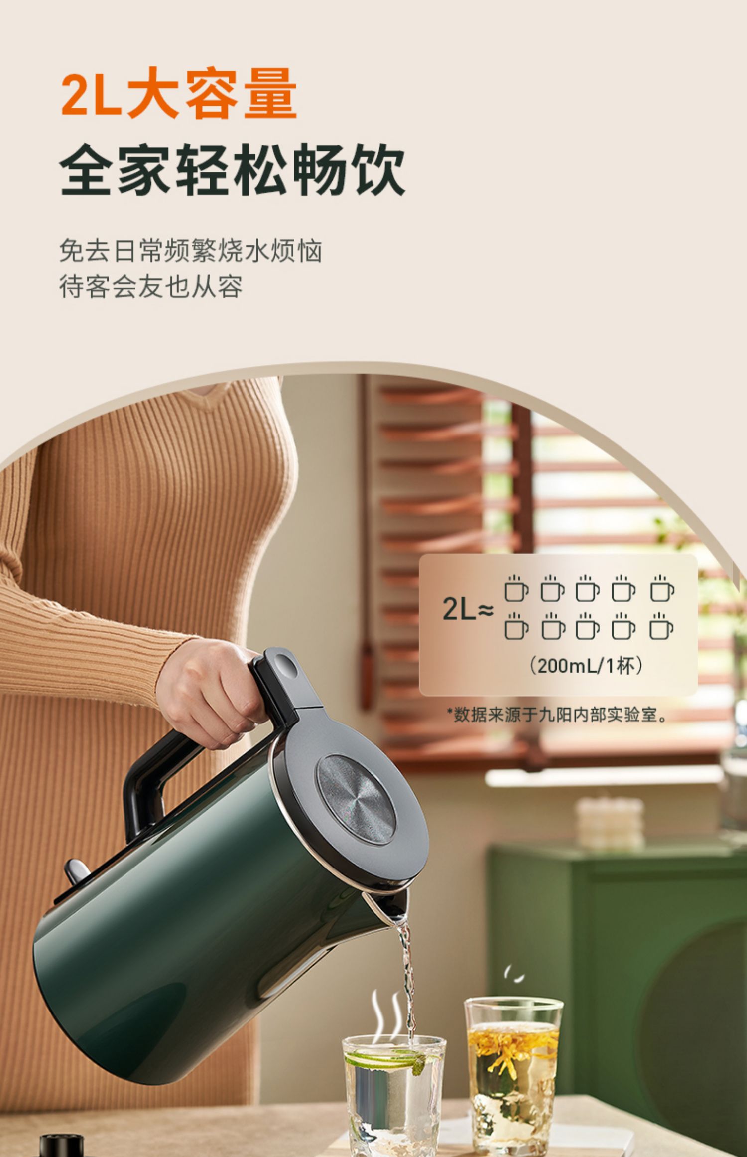 九阳2L电热水壶家用保温烧水壶自动断电开水煲恒温不锈钢电水壶