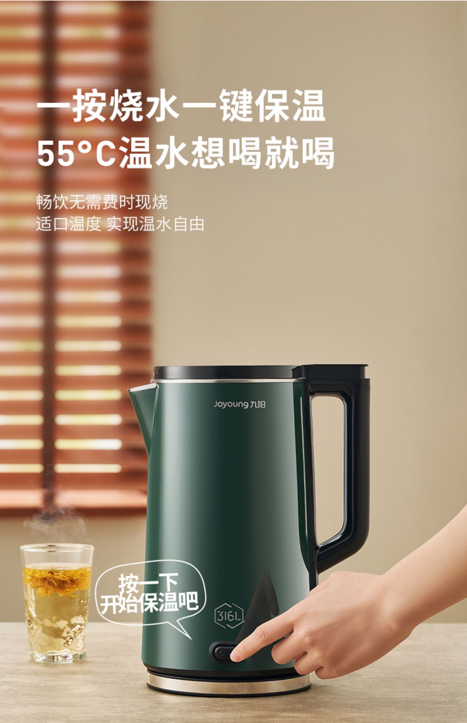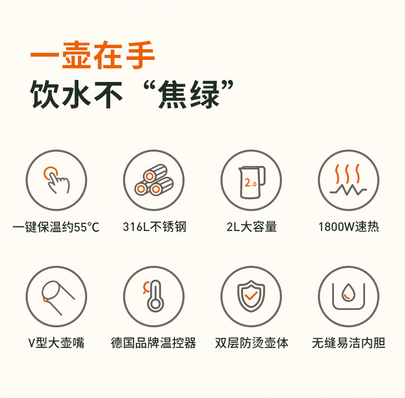 绿色 【2L 可保温316L不锈钢双层防烫壶体】
