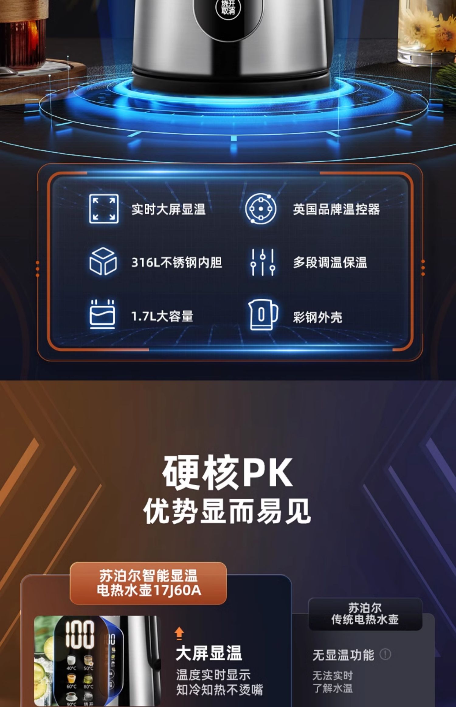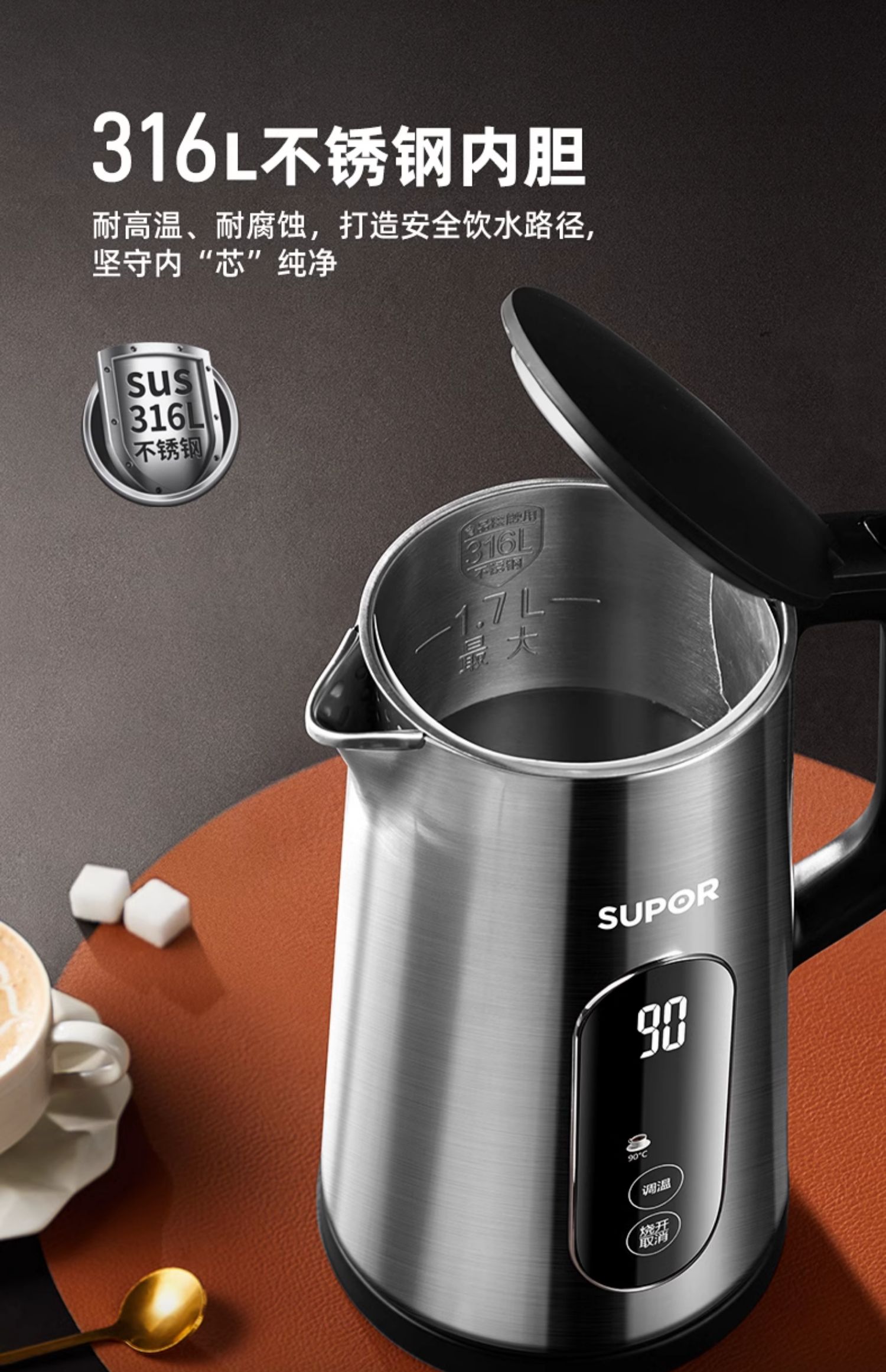 苏泊尔电热水壶保温一体自动智能316不锈钢烧水壶2025新款家用