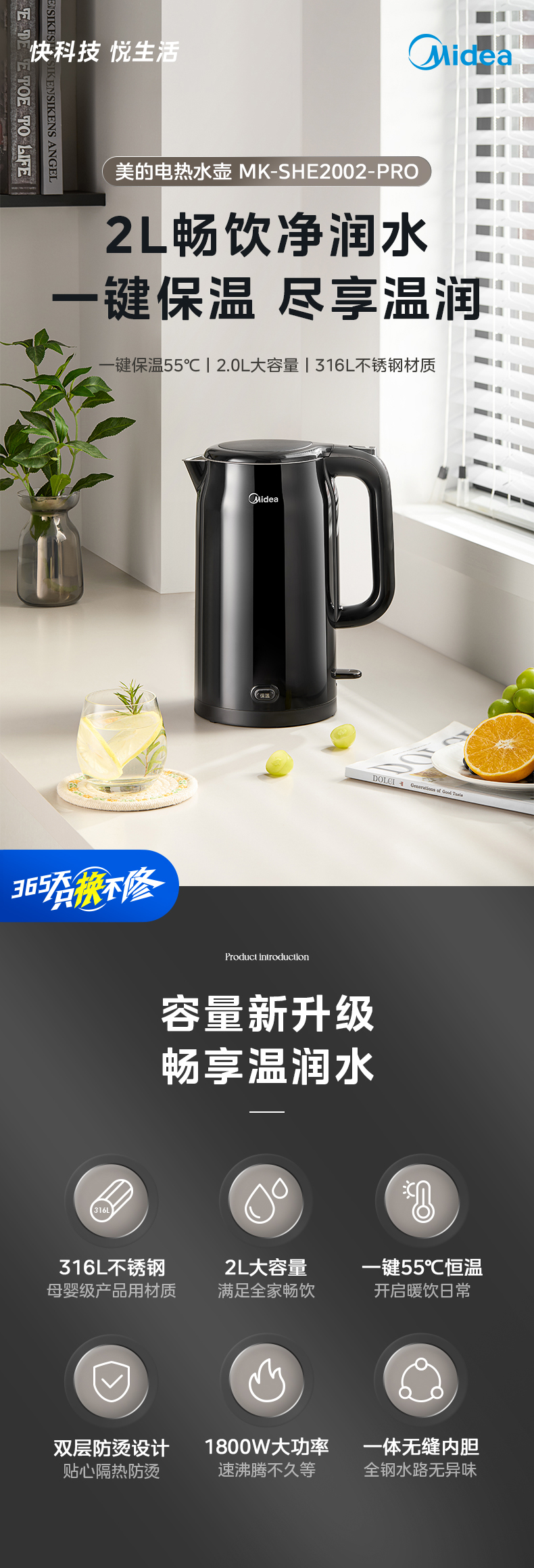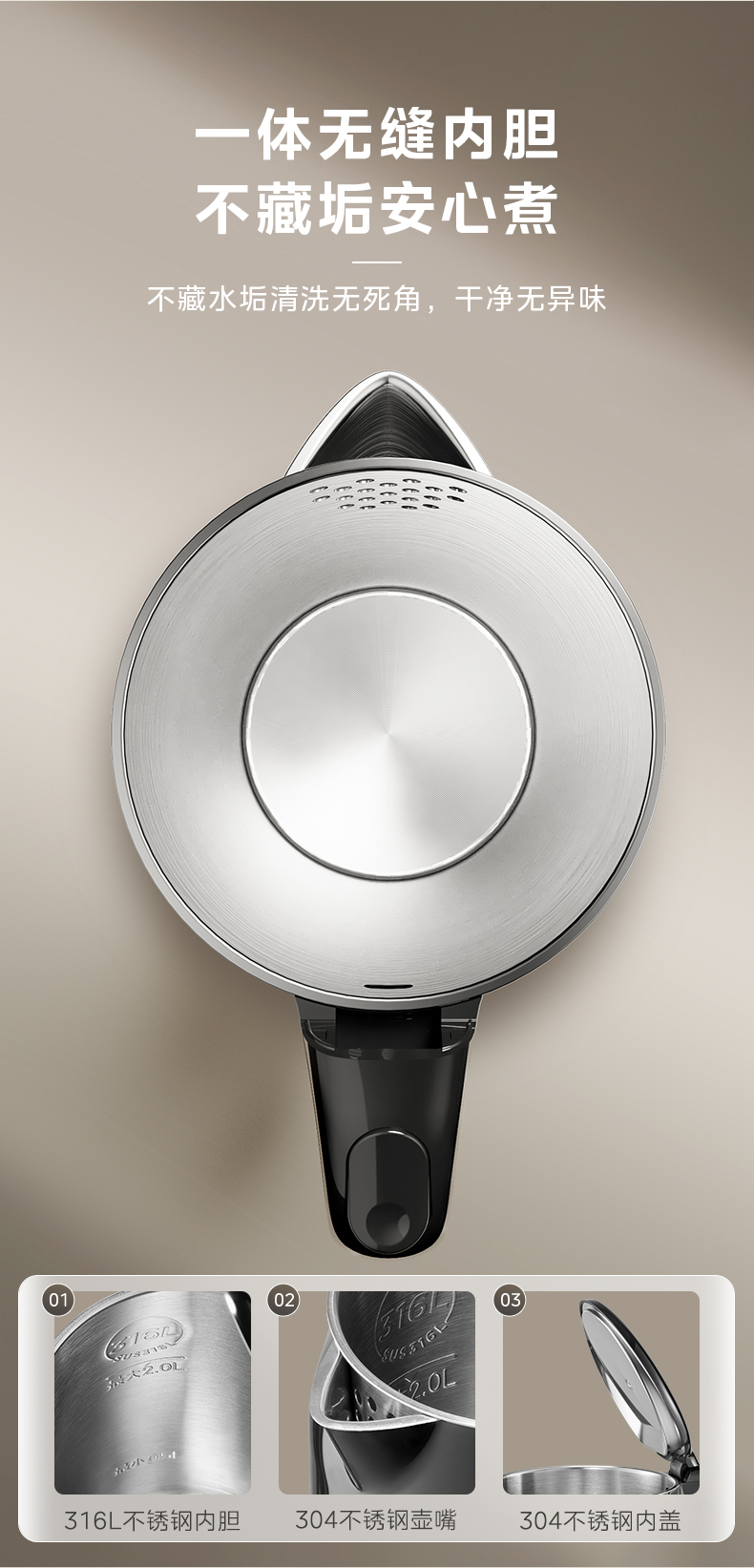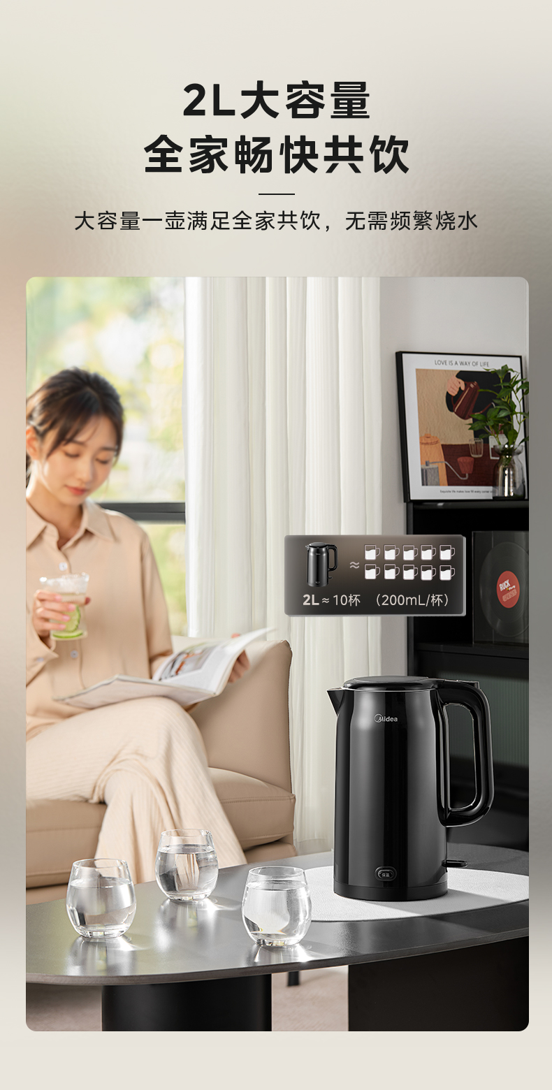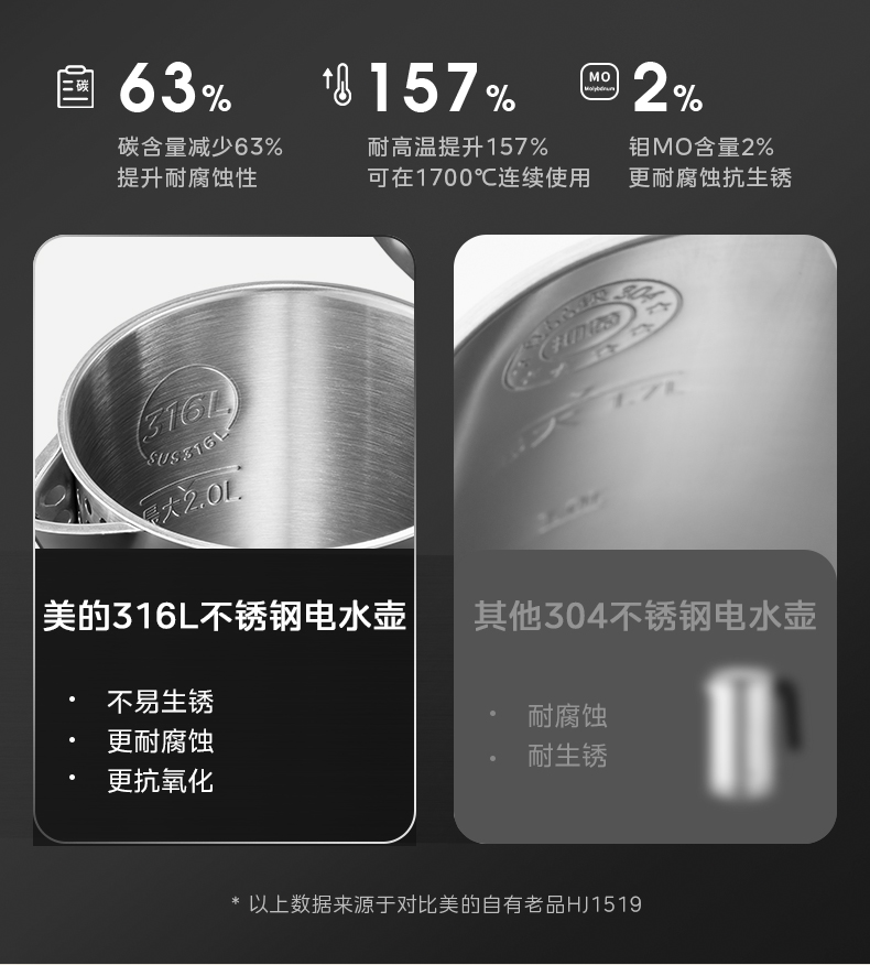 美的电热水壶2025新款家用2L大容量316L不锈钢电水壶自动断电烧水