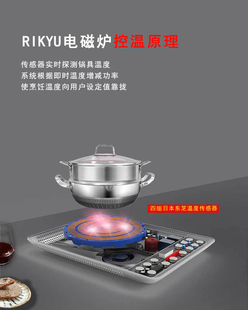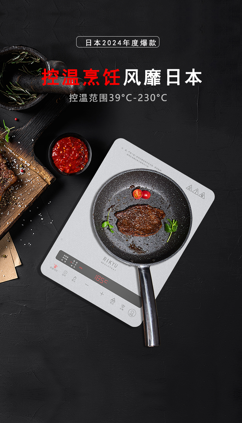Rikyu日本利休控温电磁炉超薄家用智能多功能火锅新款调温电池炉
