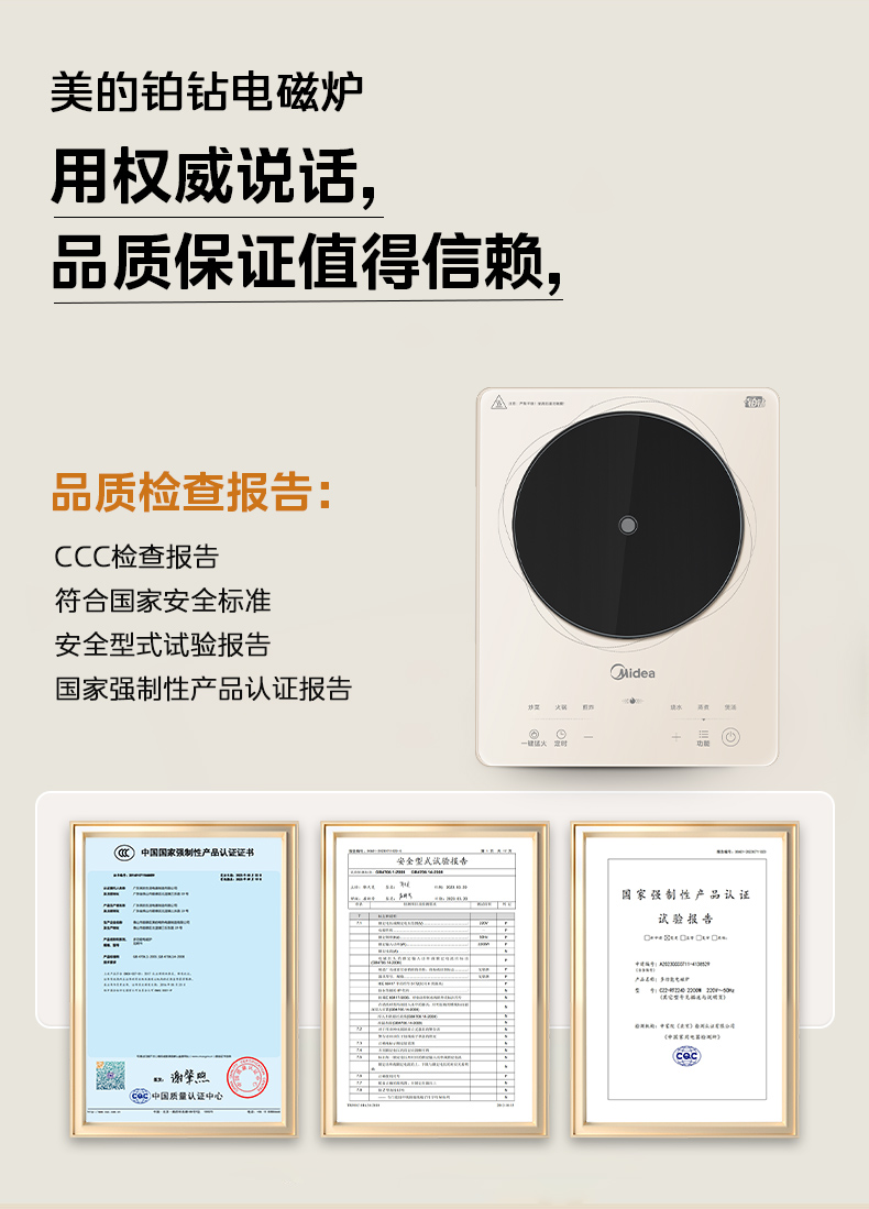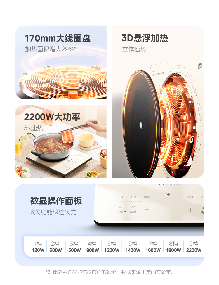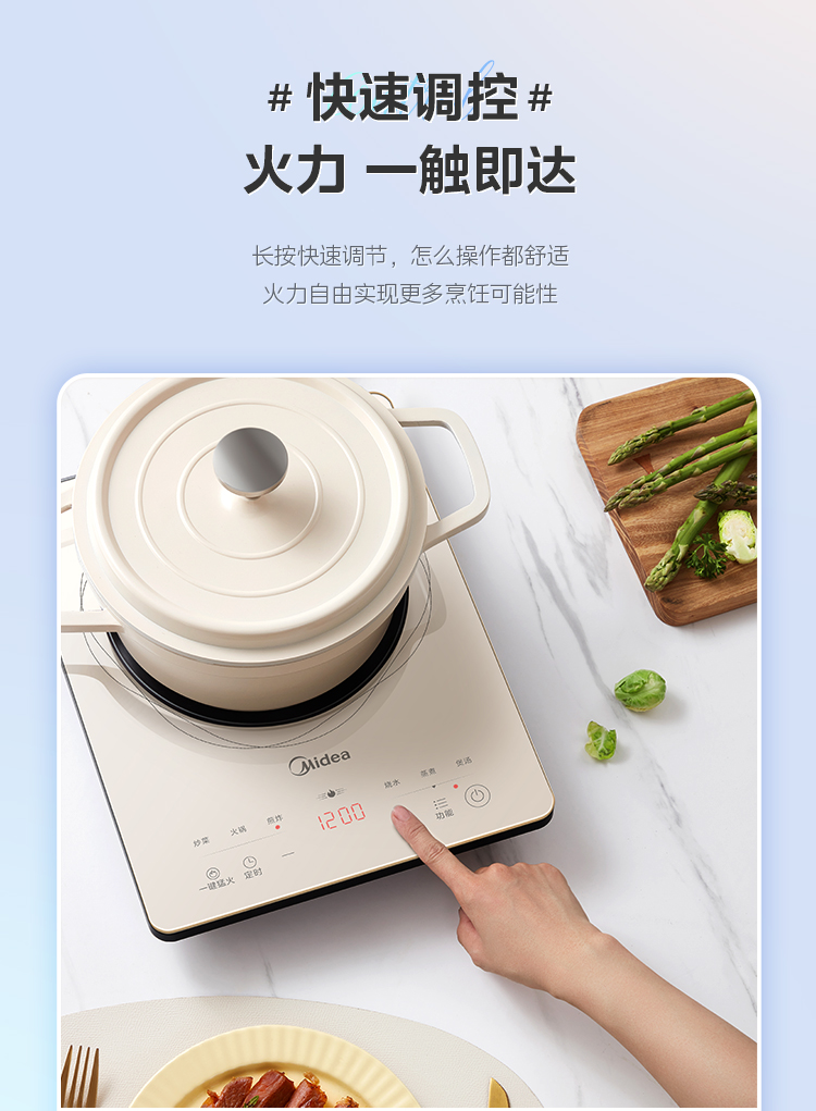 美的铂钻电磁炉家用小型炒锅节能大功率智能大火力爆炒官方正品