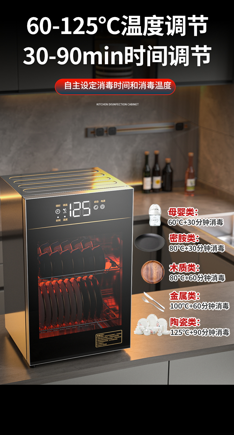 大品牌消毒柜不锈钢高温小型台式家用桌面烘干消毒碗柜免沥水