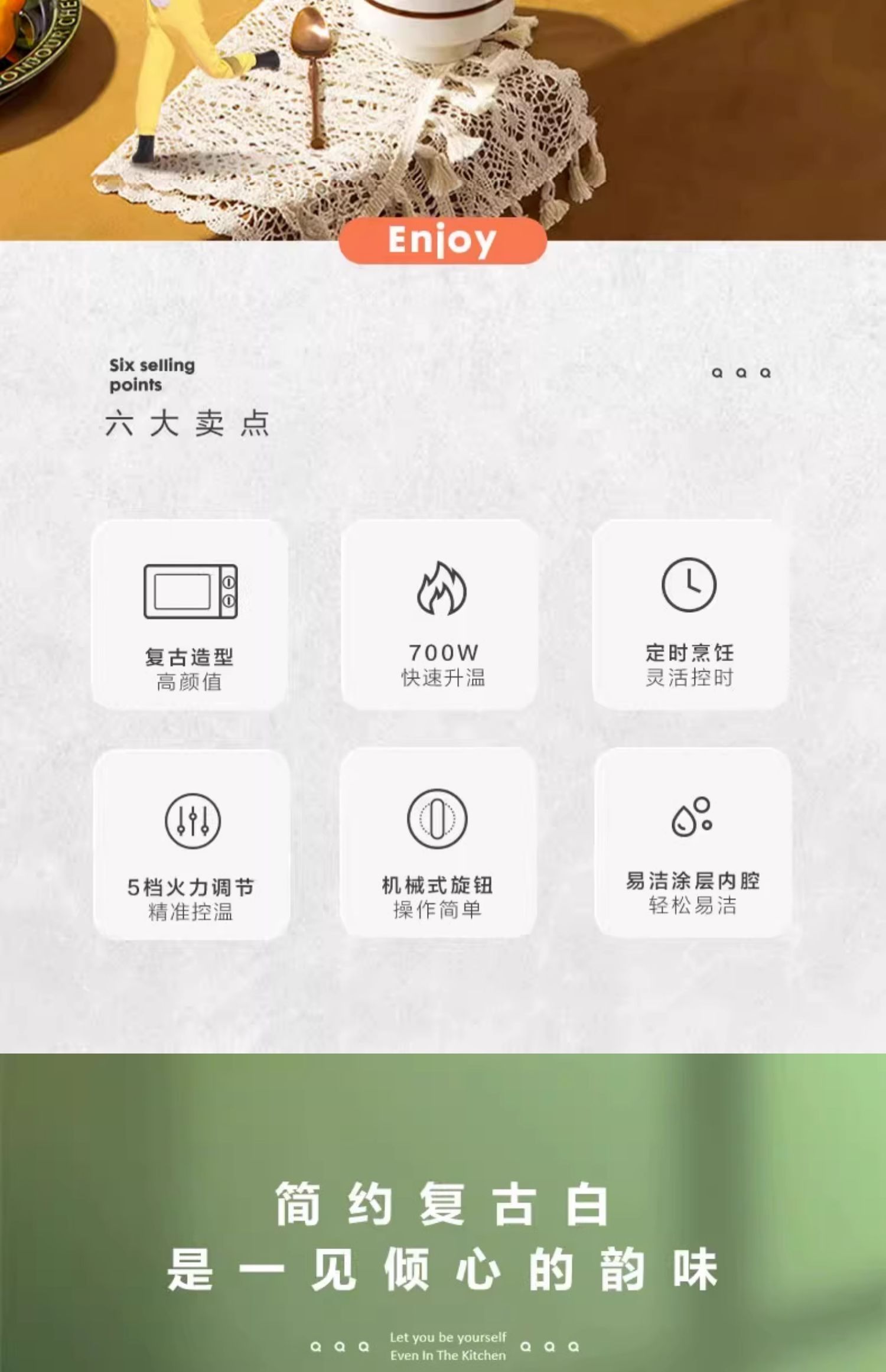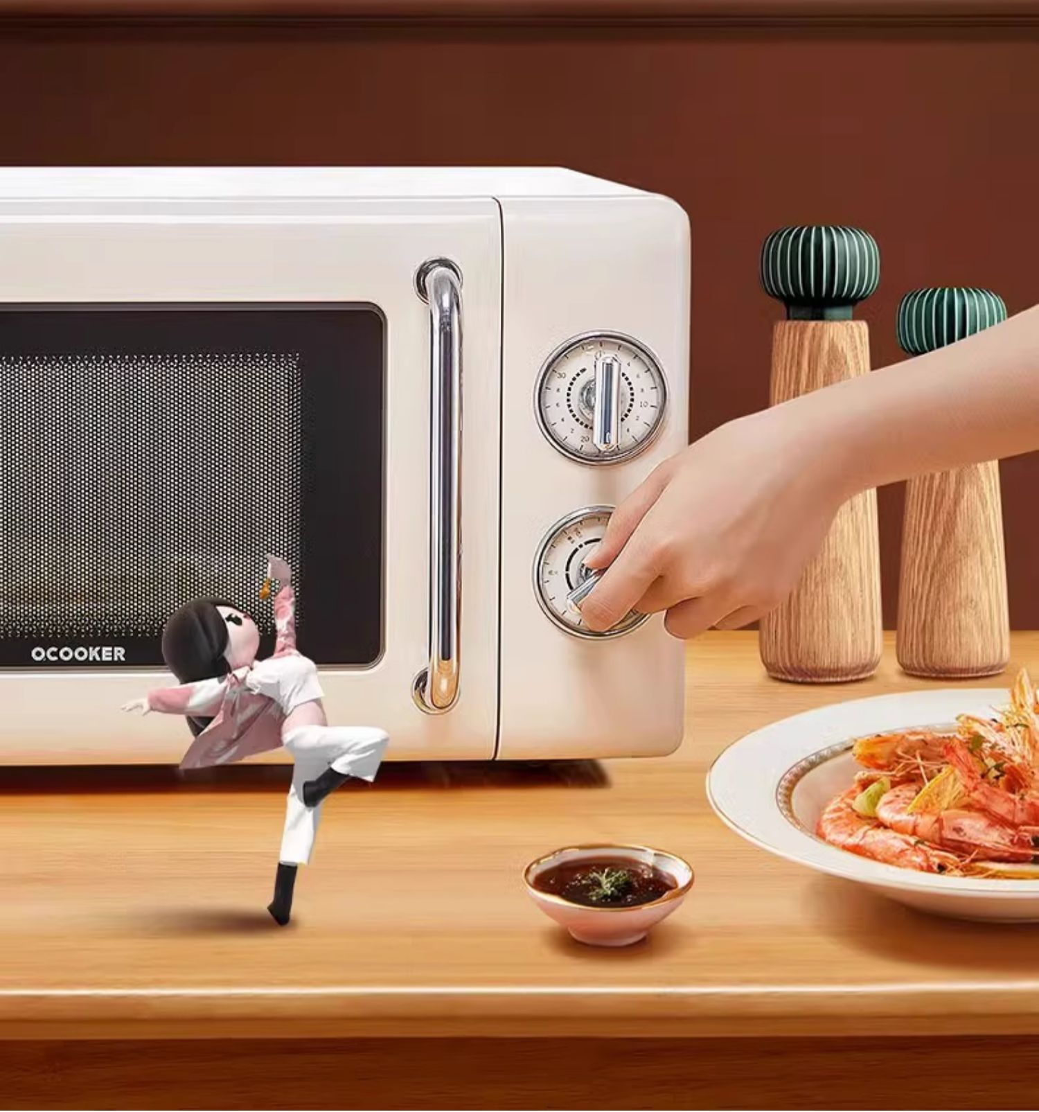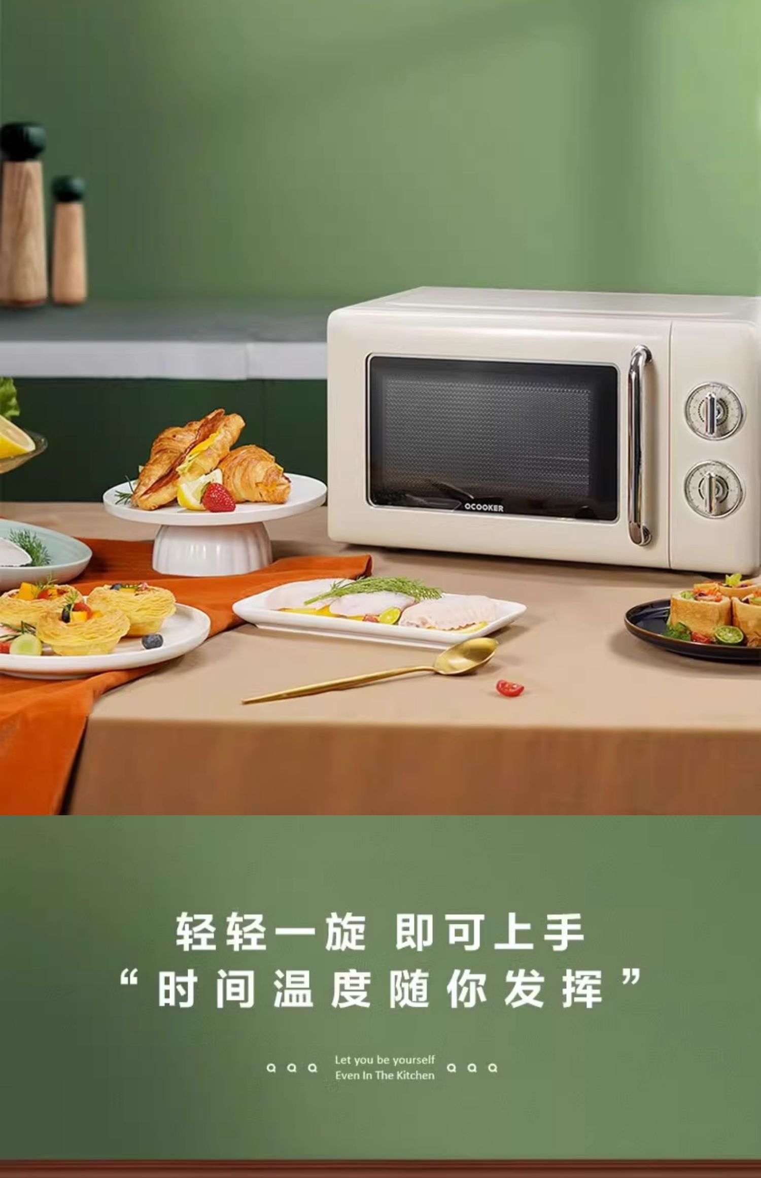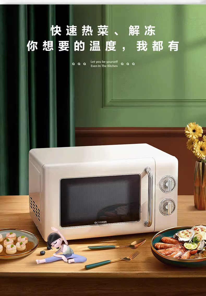 圈厨经典复古微波炉20升家用全自动转盘微波加热小型