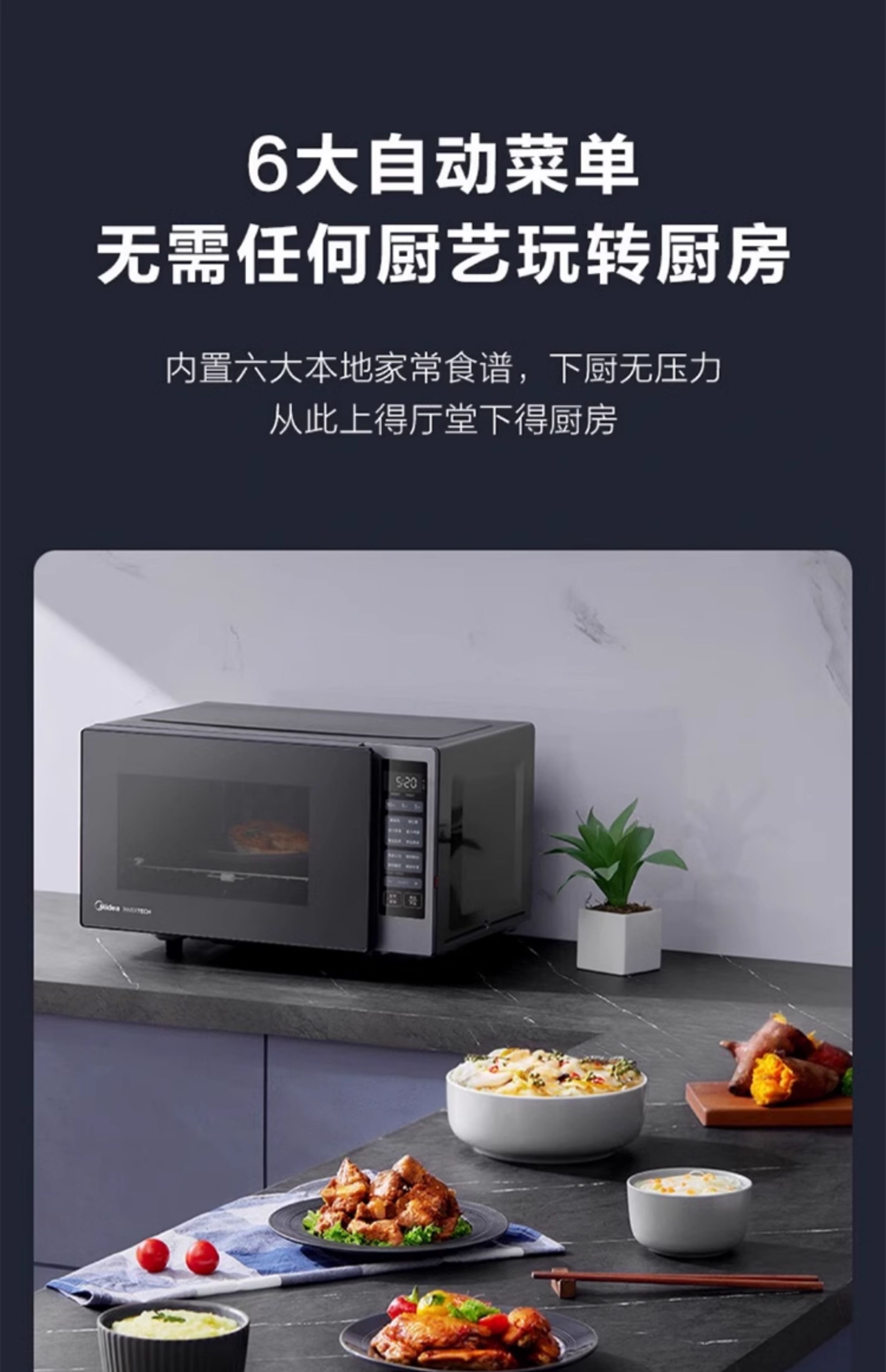 Midea/美的PC23W6智能变频微波炉家用微烤一体机多功能光波炉23L